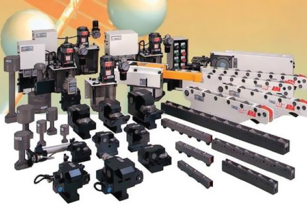 Hydraulic and pneumatic clamping systems for injection mold and dies.